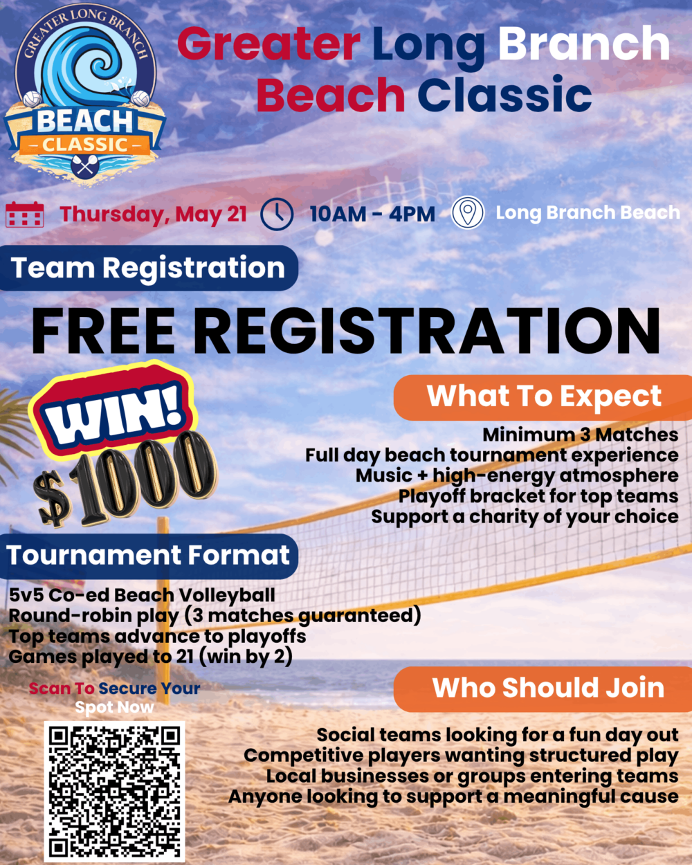 Register Your Volleyball Team 🏐 for the Greater Long Branch Beach Classic!