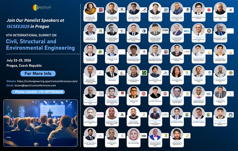 Spectrum Conferences cordially invites you to its 4th International Summit on Civil, Structural and Environmental Engineering (ISCSEE2026), which is going to be held in Prague, Czech Republic during July 23-25, 2026.