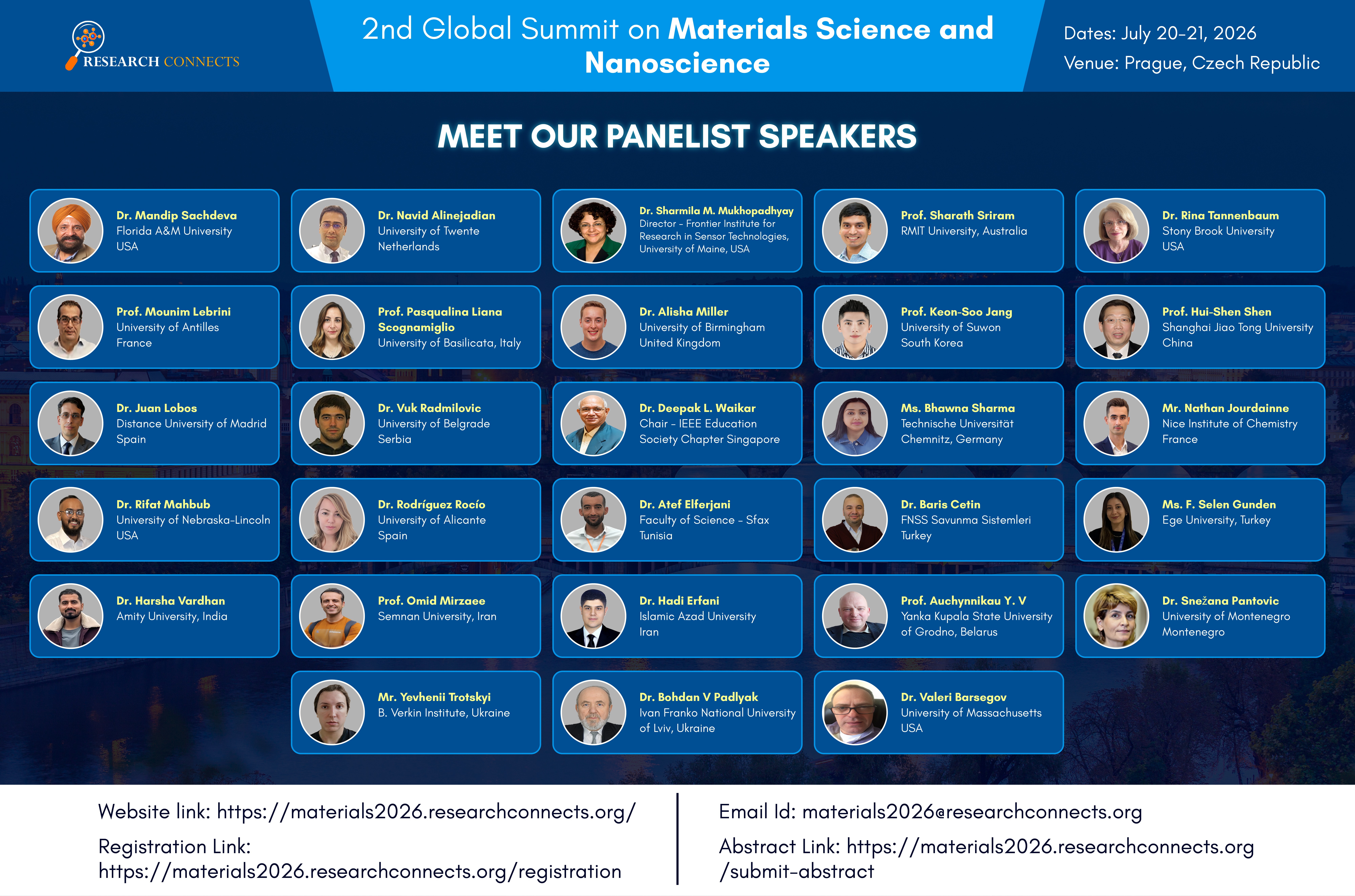 Research Connects cordially invites you to 2nd Global Summit on Materials Science and Nanoscience which is going to be held in Prague, Czech Republic during July 20-21, 2026.