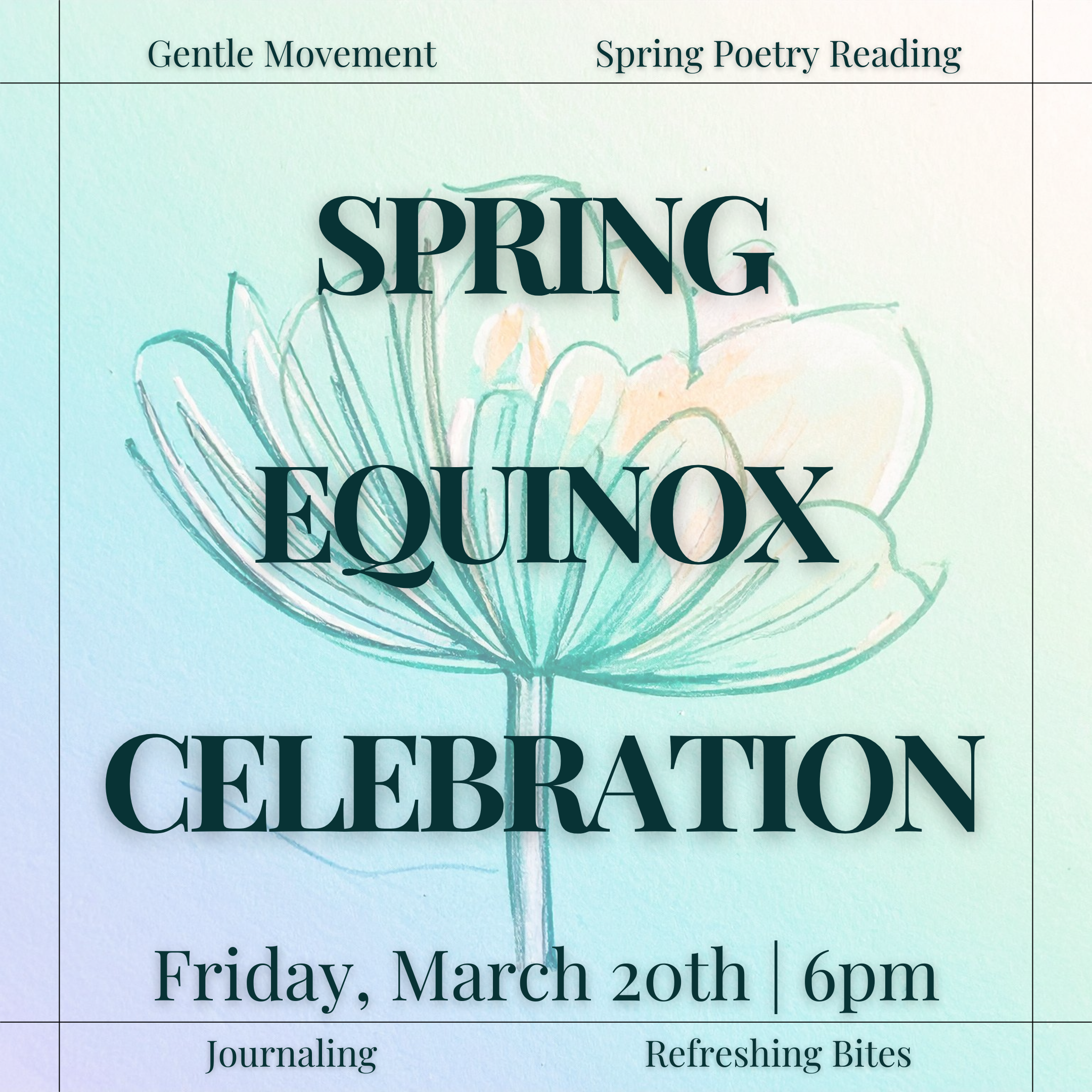Equal parts day and night as we grow and move towards the light: Spring Poetry Reading | Gentle Movement | Journaling | Delicious Bites Join us for a SPRING EQUINOX CELEBRATION! The Spring Equinox marks the astronomical start of spring. The sun's path crosses the celestial equator causing the day to consist of equal parts […]