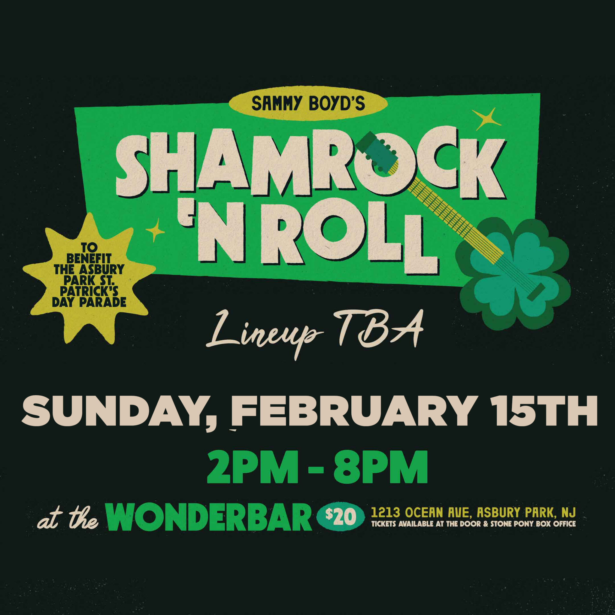 🎶🍀 Shamrock ‘n Roll at the Wonder Bar 🍀🎶 Feb 15 2:00 pm - 8:00 pm 🎶🍀 Shamrock ‘n Roll at the Wonder Bar 🍀🎶 $20