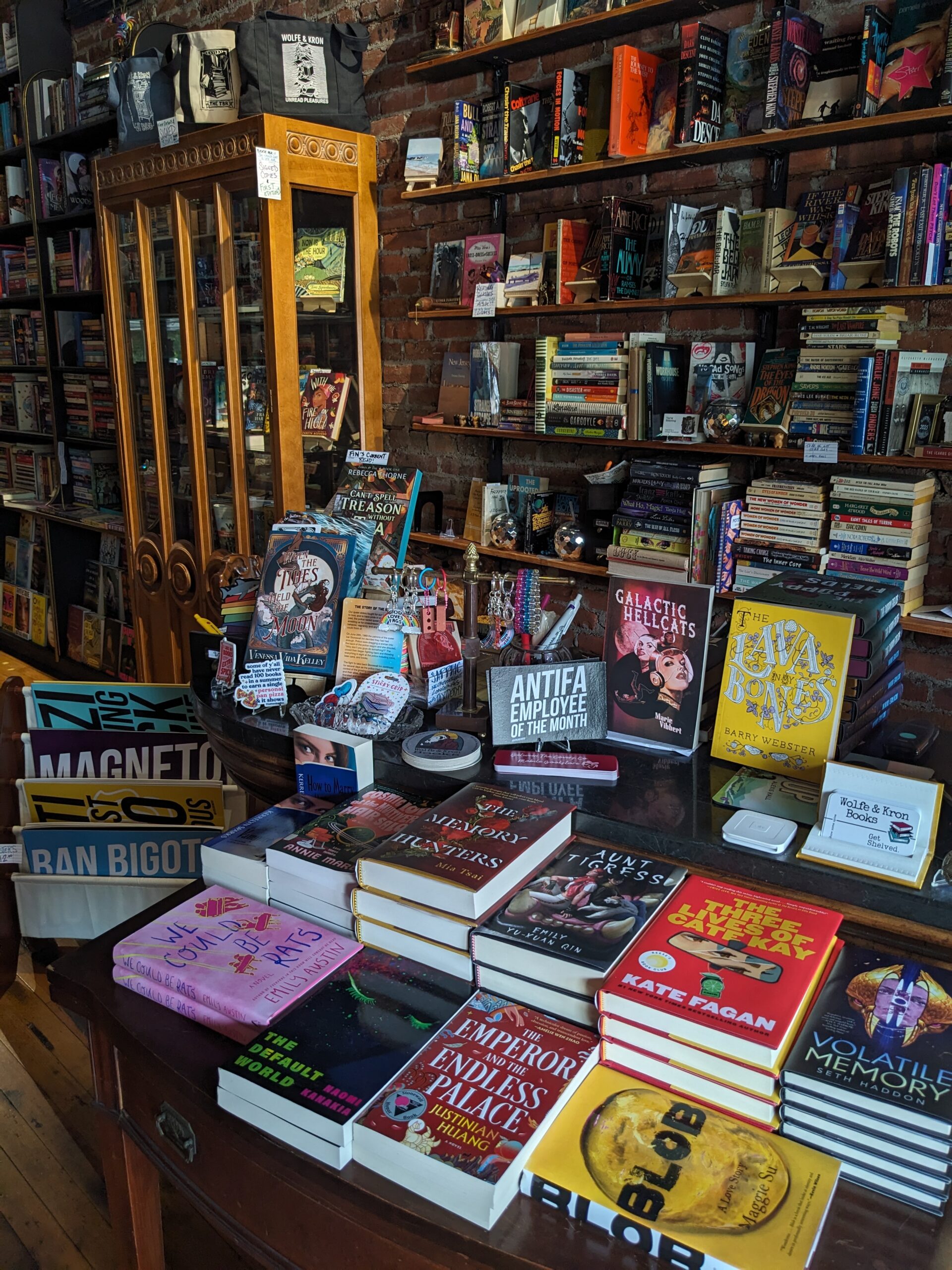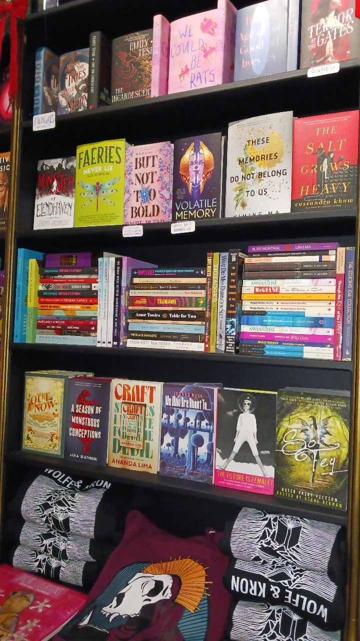 Wolfe & Kron Books is Uptown Asbury Park's queer indie bookstore bookstore. She/they is serving Collectible, Used + New Titles of fiction and non, with an emphasis on Speculative Fiction in all its forms.